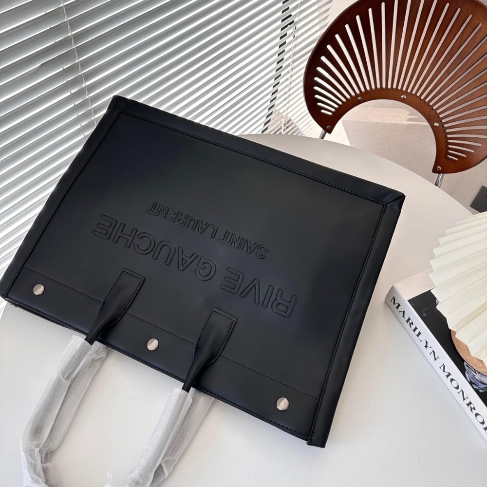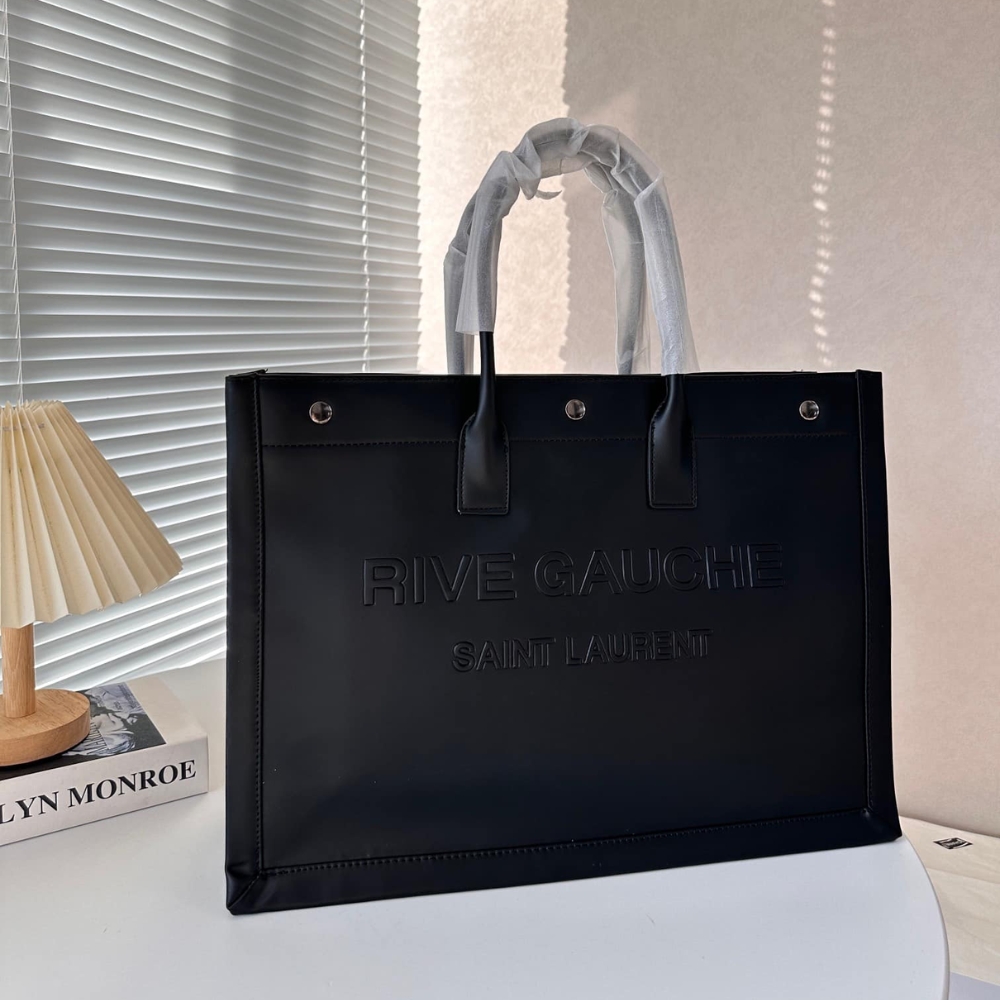 Saint Laurent Rive Gauche Large Tote Bag In Glazed Leather Black 48Cm 587273Aacp21000