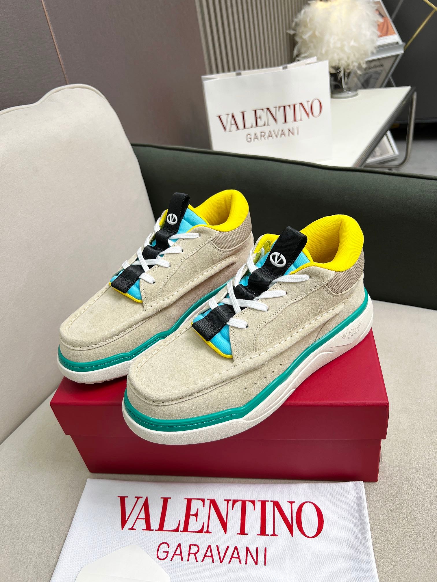 VALENTINO CALFSKIN LEATHER MID-TOP RUNBOOT SNEAKER