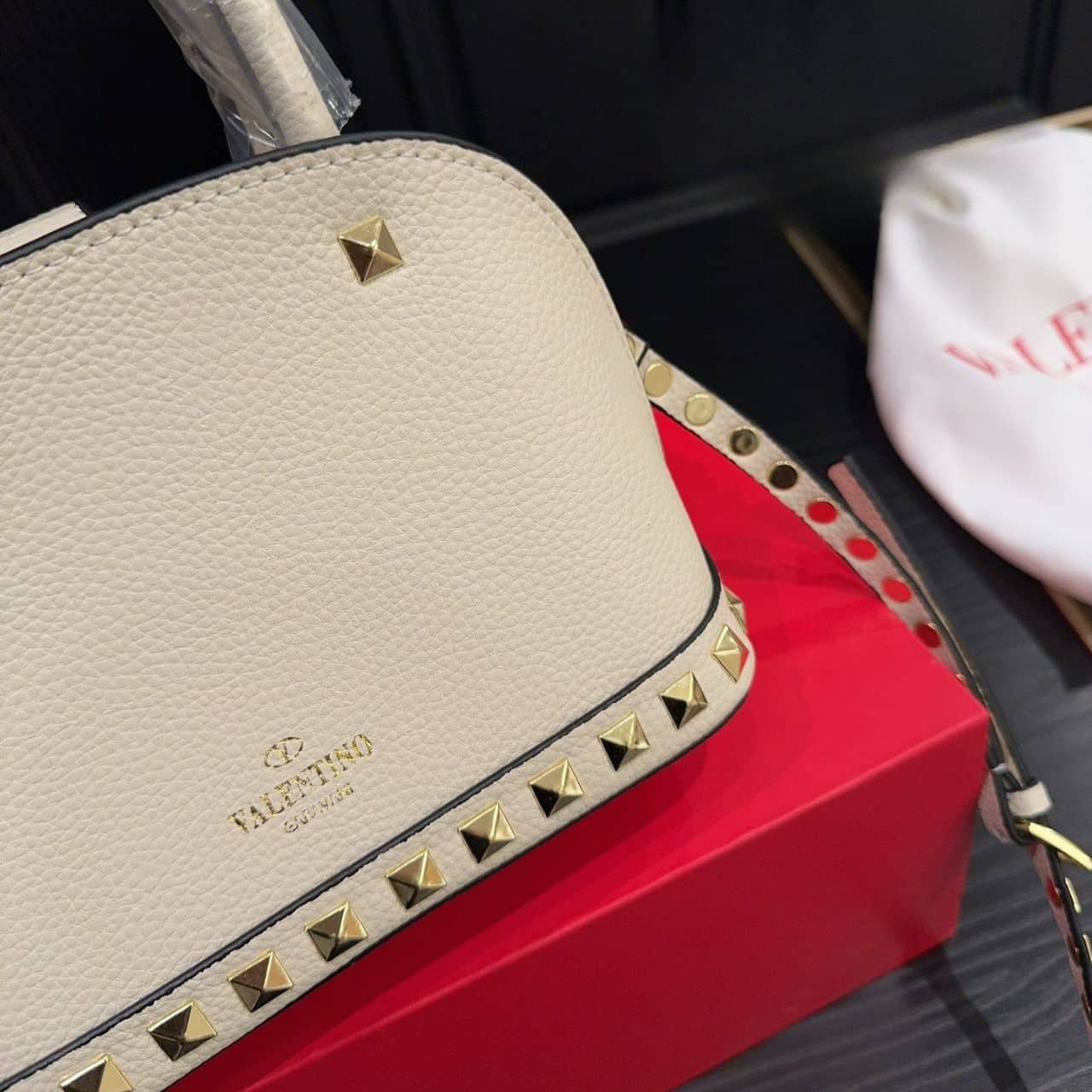 Valentino Garavani Rockstud Handbag In Grainy Leather White 21Cm