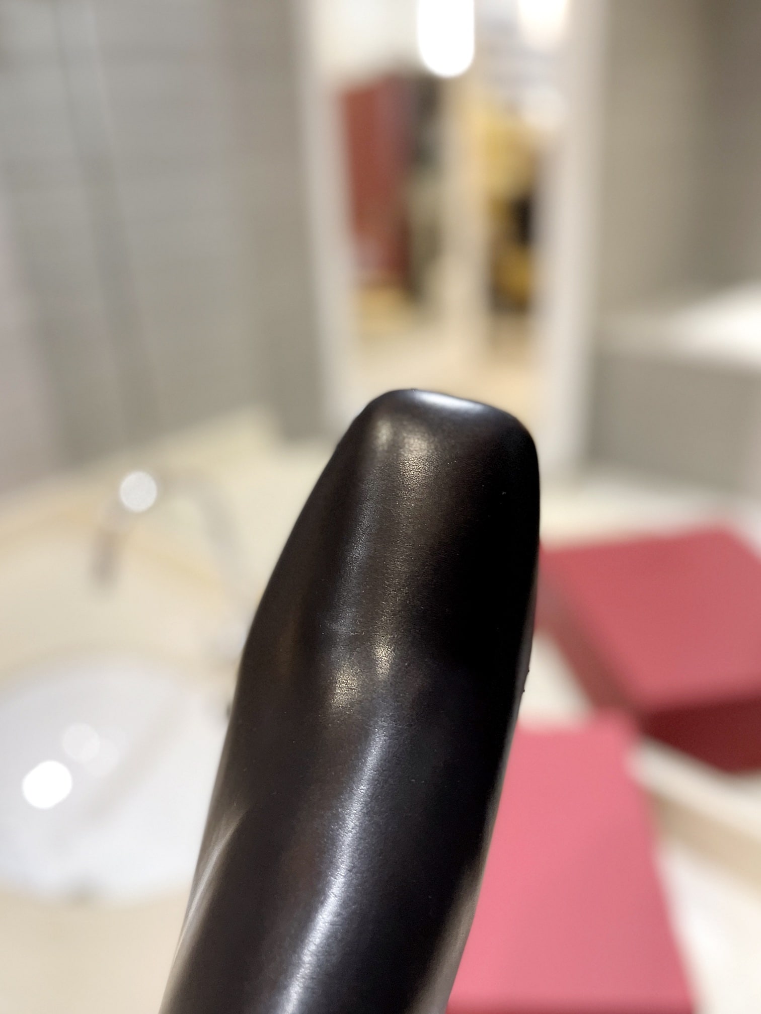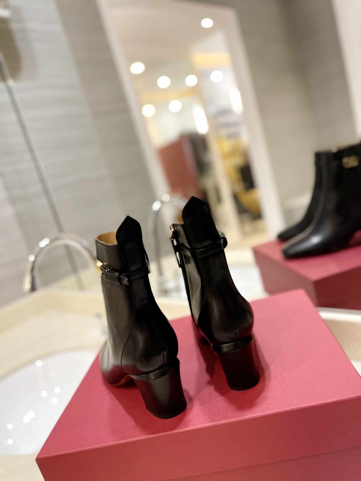 - Leather-covered block heel