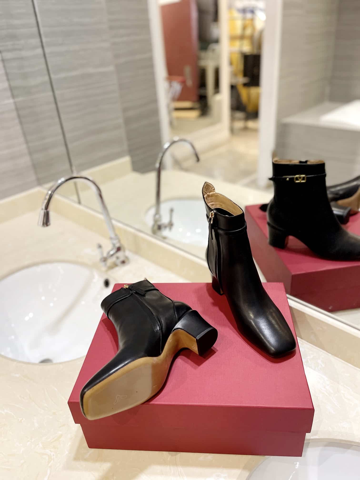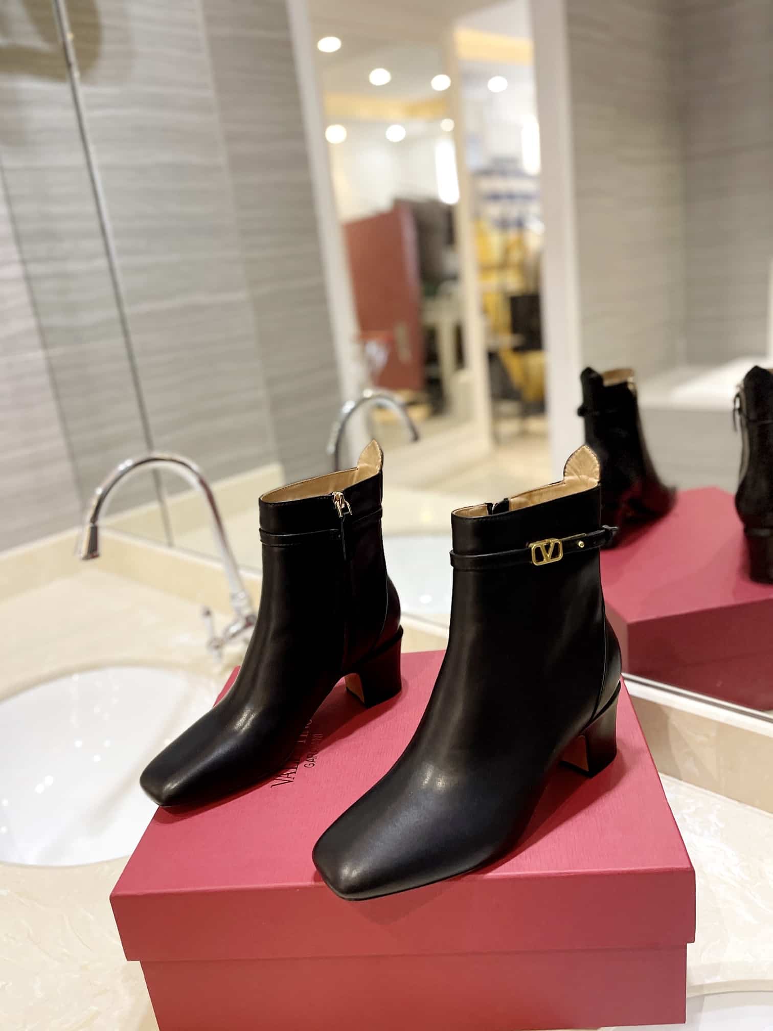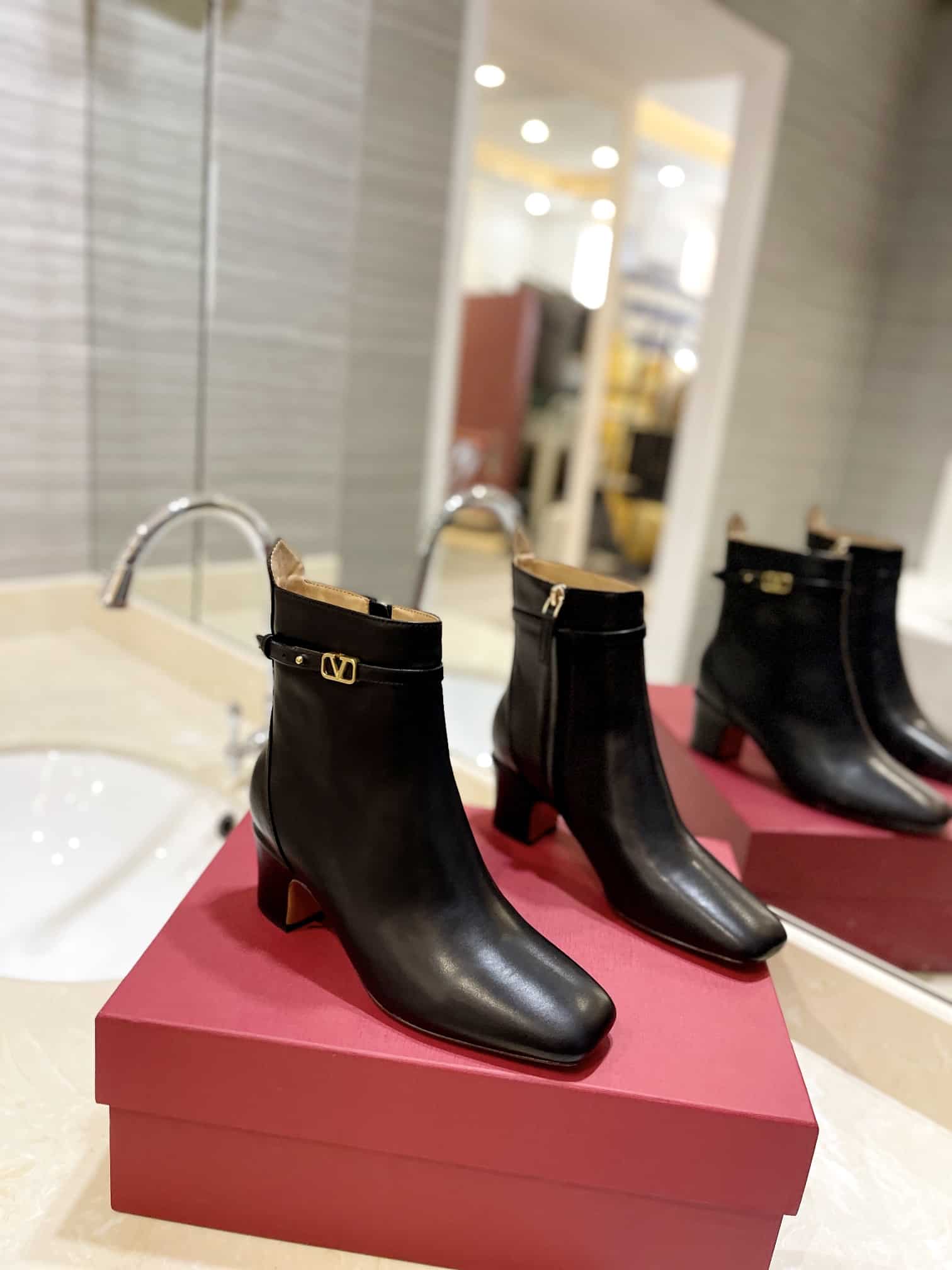 - Ankle strap with customized VLogo Signature buckle