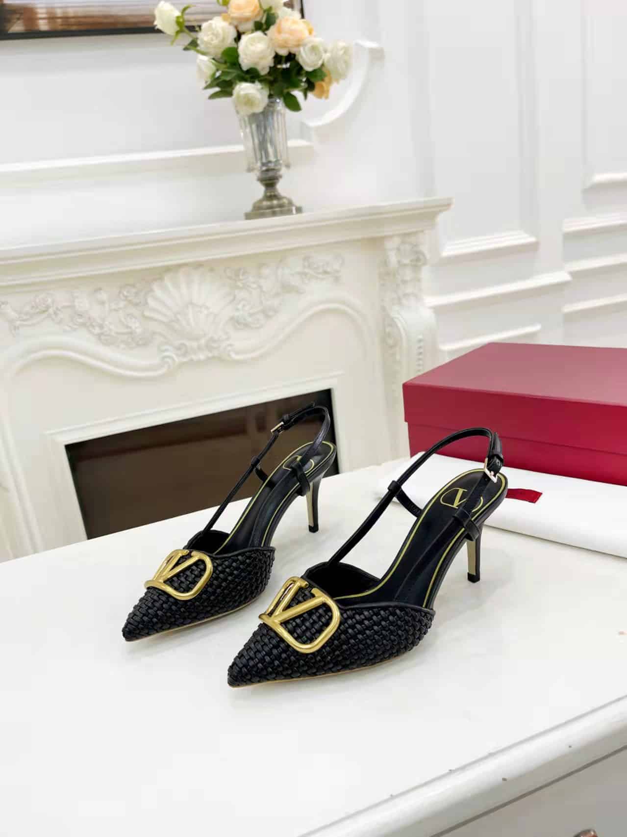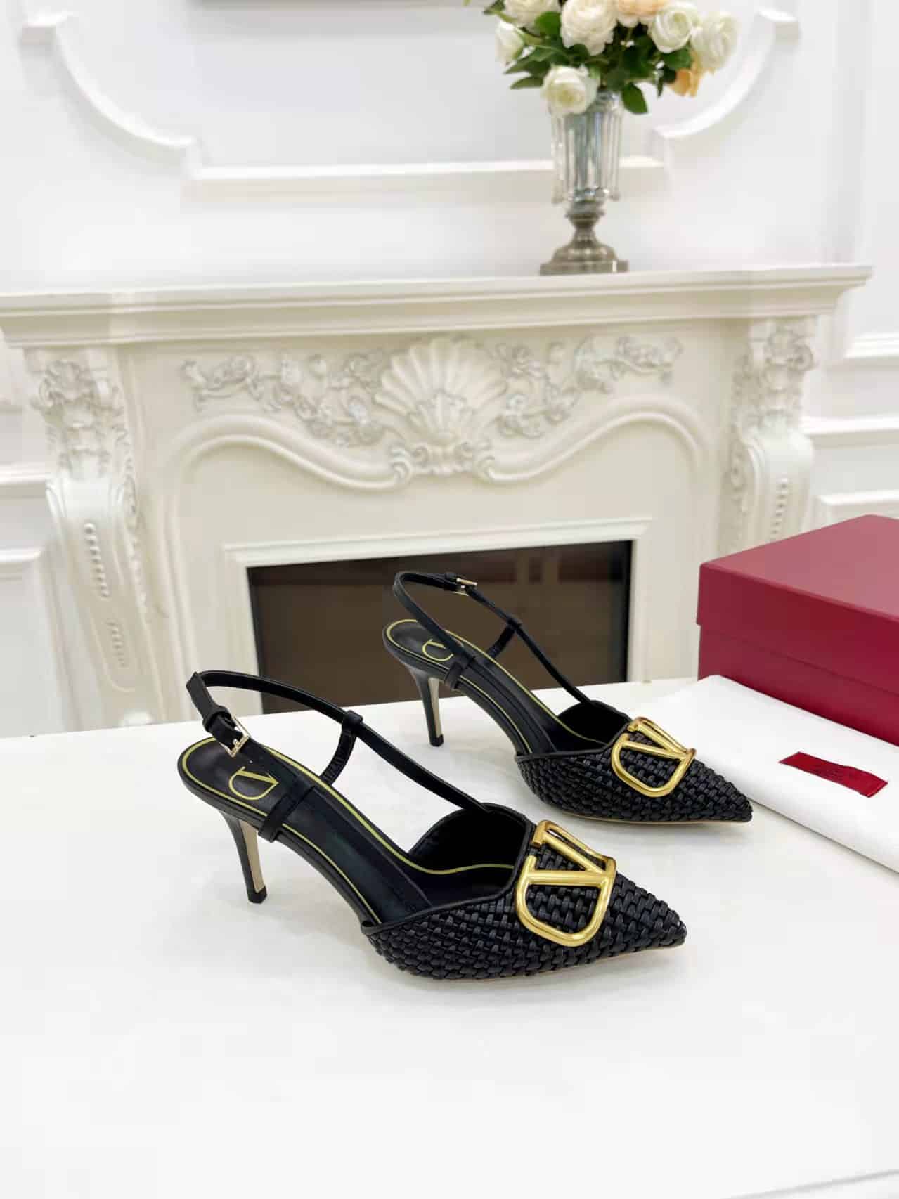 Valentino Garavani Vlogo Woven Leather Slingback Pumps Black