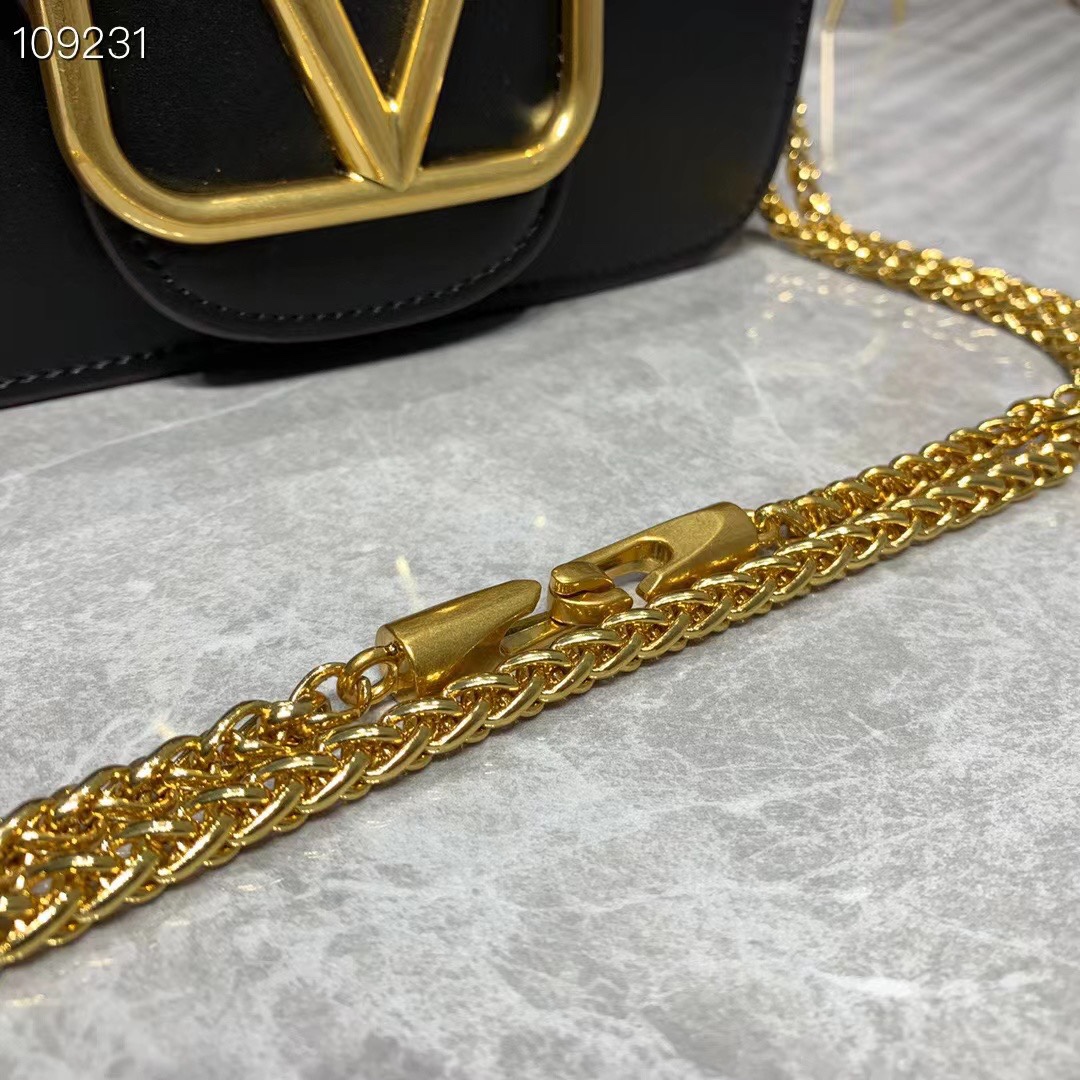 Valentino Garavani Locò women’s small shoulder bag in calfskin leather with VLogo Signature metallic element. Equipped with a detachable sliding chain strap and a removable handle, this accessory can be worn as a crossbody/shoulder bag or carried as a handbag.