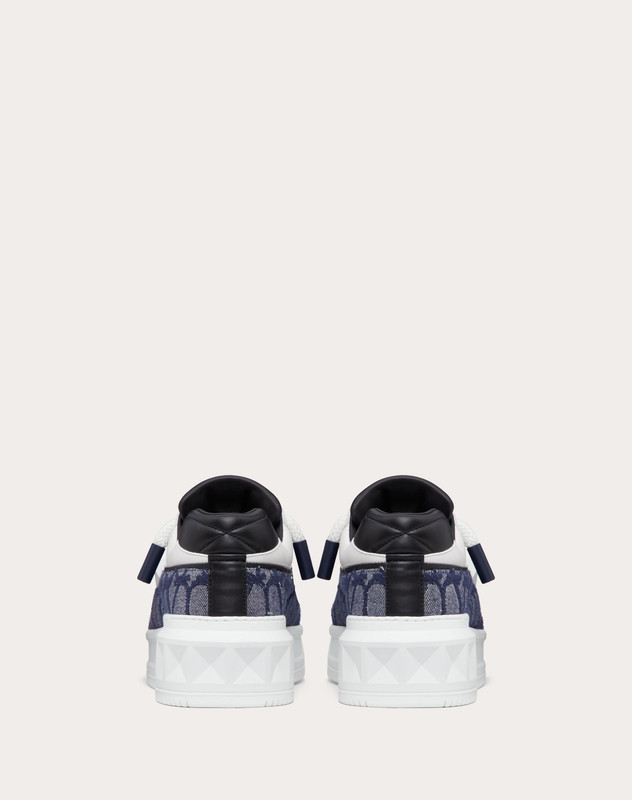 VALENTINO ONE STUD XL LOW-TOP SNEAKER IN DENIM-EFFECT TOILE ICONOGRAPHE JACQUARD FABRIC