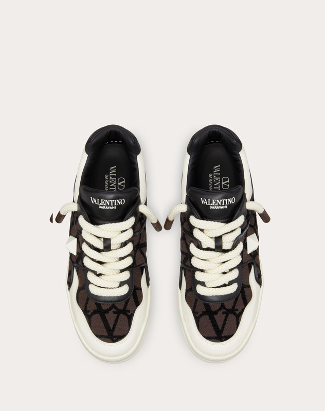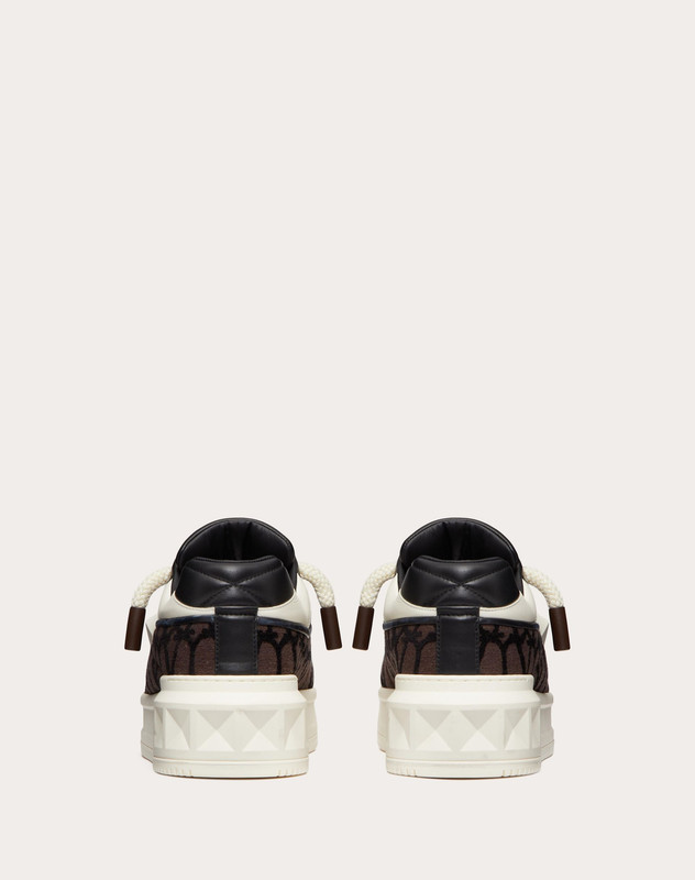 VALENTINO ONE STUD XL LOW-TOP SNEAKER IN NAPPA LEATHER AND TOILE ICONOGRAPHE FABRIC