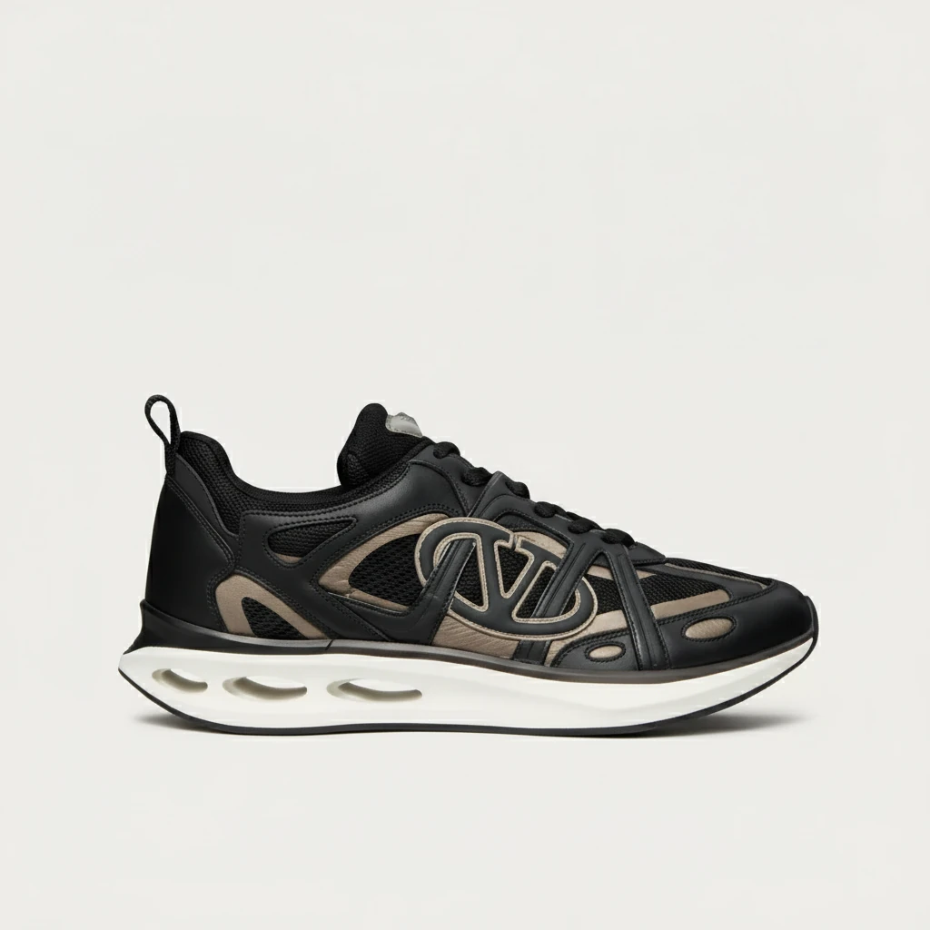 VALENTINO VLOGO EASYJOG LOW-TOP SNEAKER IN CALFSKIN AND FABRIC