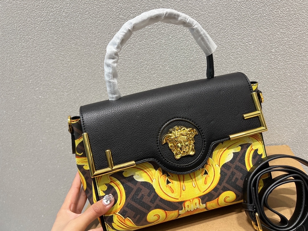 Versace X Fendi Fendace La Medusa Medium Handbag Black