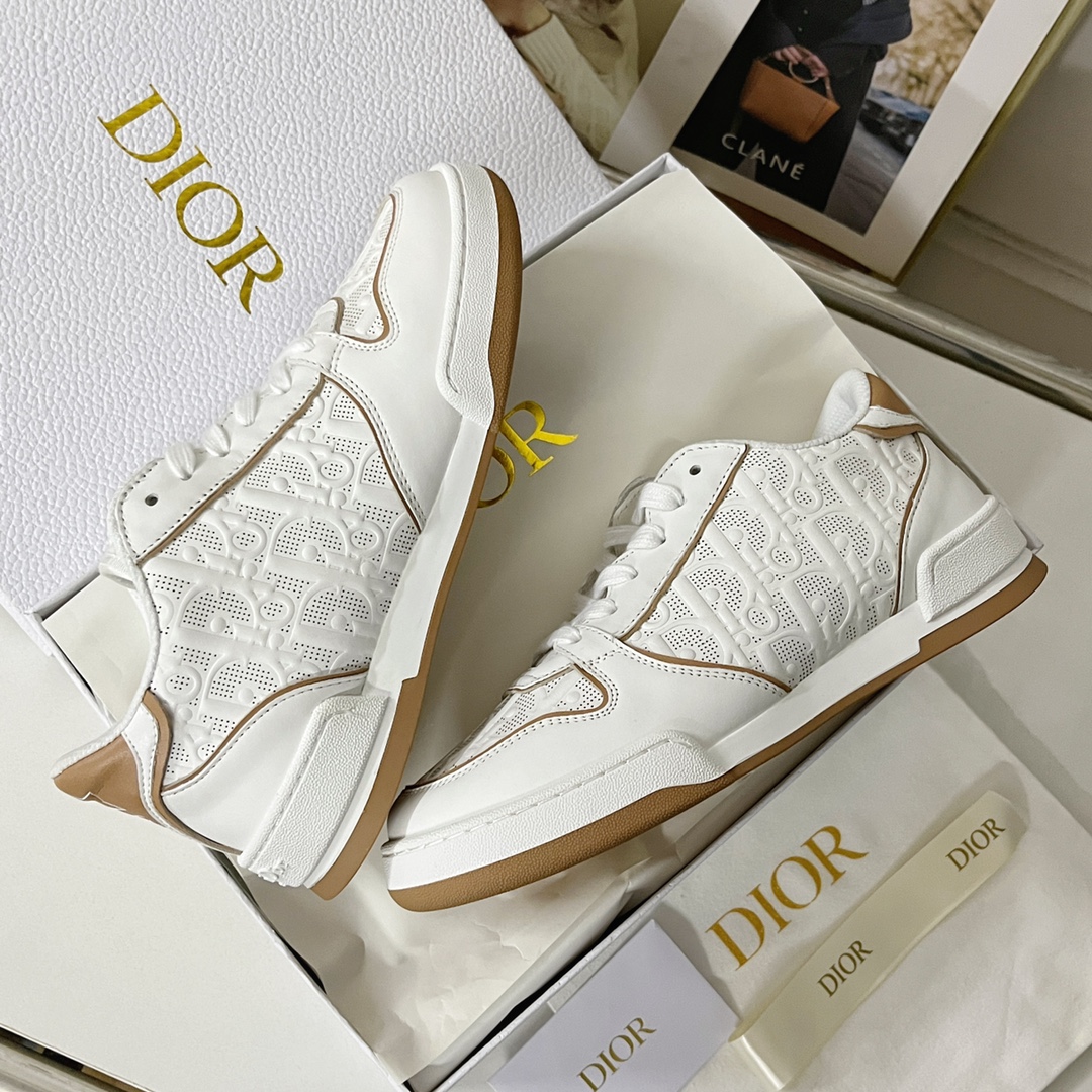 White Dior Oblique Perforated Calfskin Sneaker